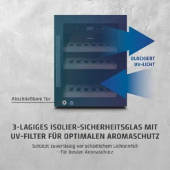 • Cristal de seguridad de triple capa con filtro UV para una protección óptima del aroma.